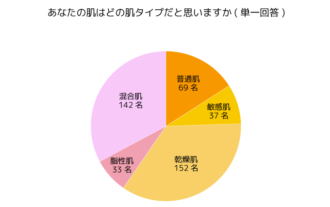 その他、「普通肌」が16%、「敏感肌」が9%、「脂性肌」が8%という結果になりました。