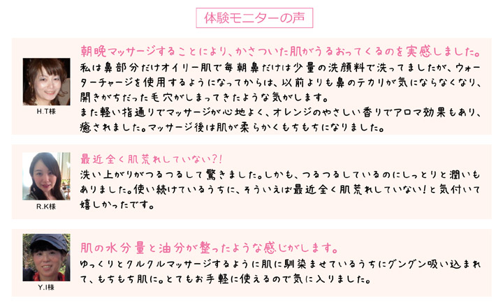 | 使用方法 | 朝:1-2プッシュを顔全体に広げ、小さな円を描くようにマッサージしていきます。その後、濡れタオルでやさしく拭き取るか、ぬるま湯で洗い流してください。 夜:2-3プッシュを顔全体、首やデコルテに広げ、小さな円を描くように軽くマッサージしていきます。その後、濡れタオルでやさしくふき取るか、ぬるま湯で洗い流してください。 |
